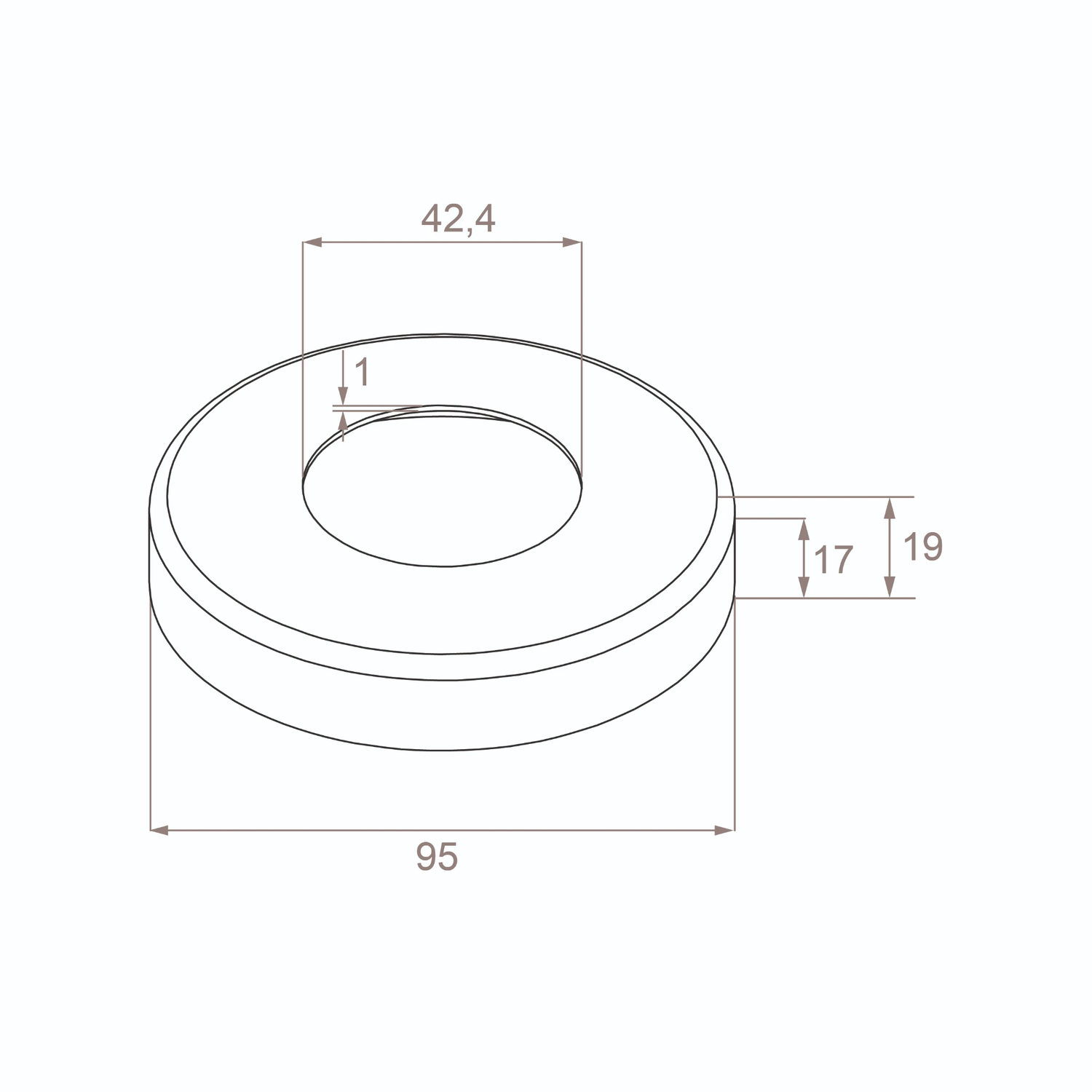Runde Abdeckrosette mit Kragen für Rohre mit Durchmesser Ø42,4 mm, gefertigt aus Edelstahl AISI 304 mit Spiegeloberflächenfinish. Dient zur ästhetischen Abdeckung von Geländerpfostenfüßen, verdeckt Montagelöcher, Befestigungsschrauben sowie rohe Schweißnähte. Durch die Verwendung von säurebeständigem Stahl schützt sie die Konstruktion wirksam vor Korrosion und Witterungseinflüssen und gewährleistet jahrelange Haltbarkeit sowohl im Innen- als auch im Außenbereich.