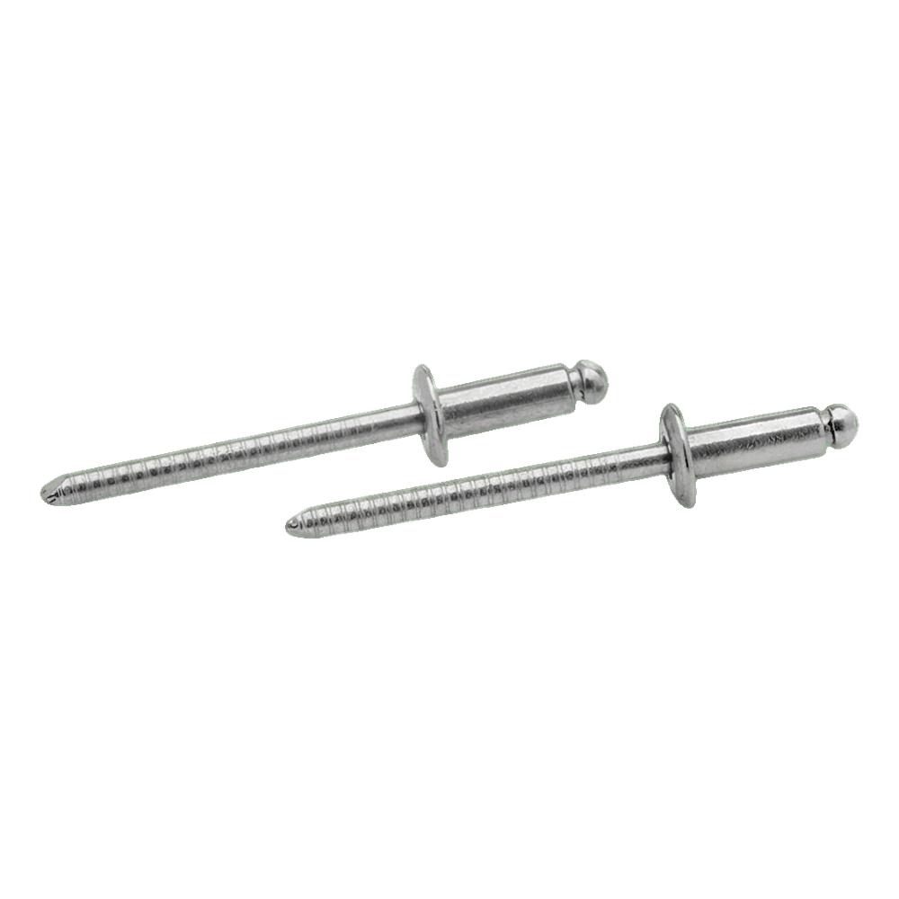 Abreißniet geriffelt 4×12 mm aus Edelstahl A2 (AISI 304), hergestellt nach Norm DIN 7337. Bestimmt für schnelle und dauerhafte Verbindung von Metallelementen — besonders bewährt bei der Montage von Geländern, Zäunen sowie Stahlkonstruktionen, die atmosphärischen Einflüssen ausgesetzt sind.