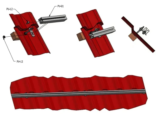 Das Montageprofil eignet sich zur Befestigung von Photovoltaikmodulen mittels Mittel- und Endklemmen. Die Klemmen werden am oberen Schienenkanal des Profils befestigt. Der untere Schienenkanal ermöglicht die Montage des Profils auf Adaptern, Dachhaken oder Dreiecken.