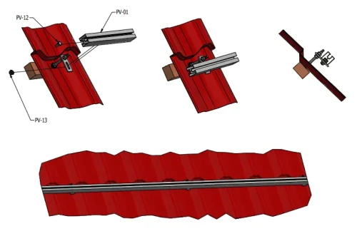 Das Montageprofil eignet sich zur Befestigung von Photovoltaikmodulen mittels Mittel- und Endklemmen. Die Klemmen werden am oberen Schienenkanal des Profils befestigt. Der untere Schienenkanal ermöglicht die Montage des Profils auf Adaptern, Dachhaken oder Dreiecken.