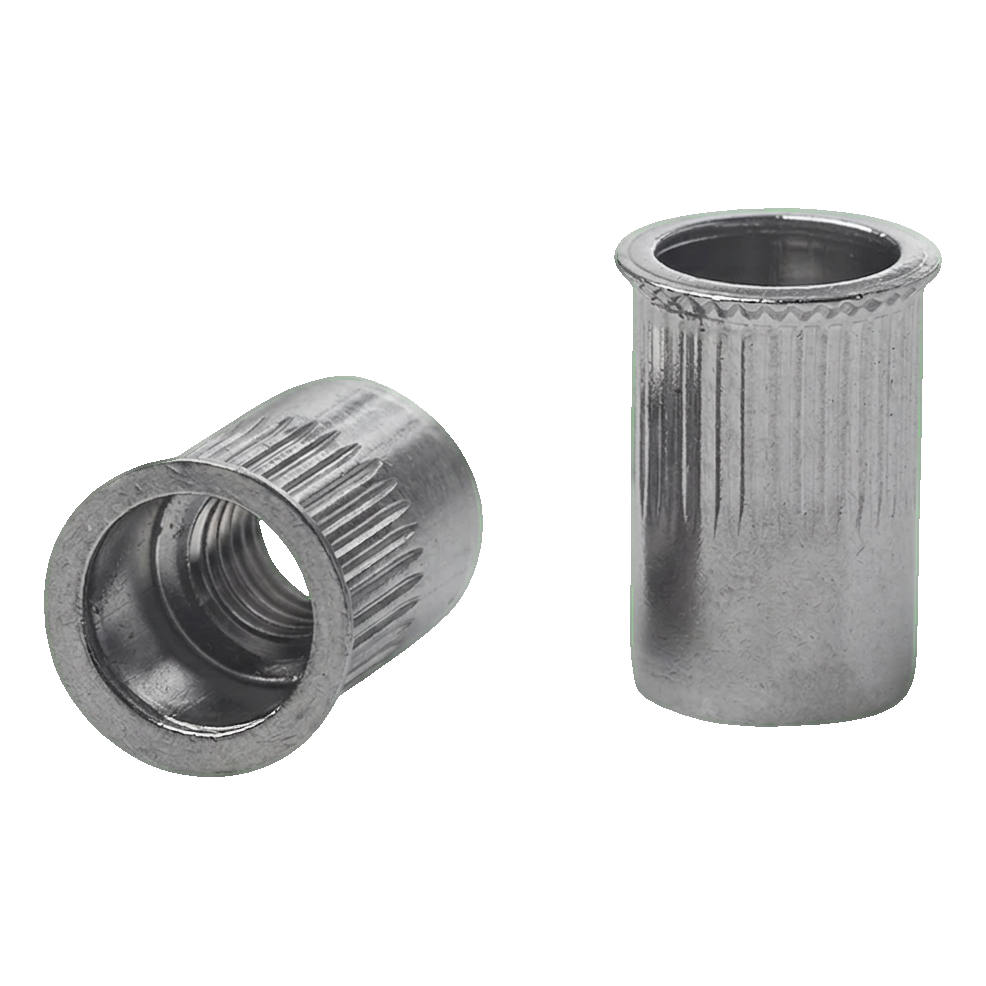 Blindnietmutter durchgehend M6 A2 AISI 304 – reduzierter Kegelkragen, geriffelter Schaft