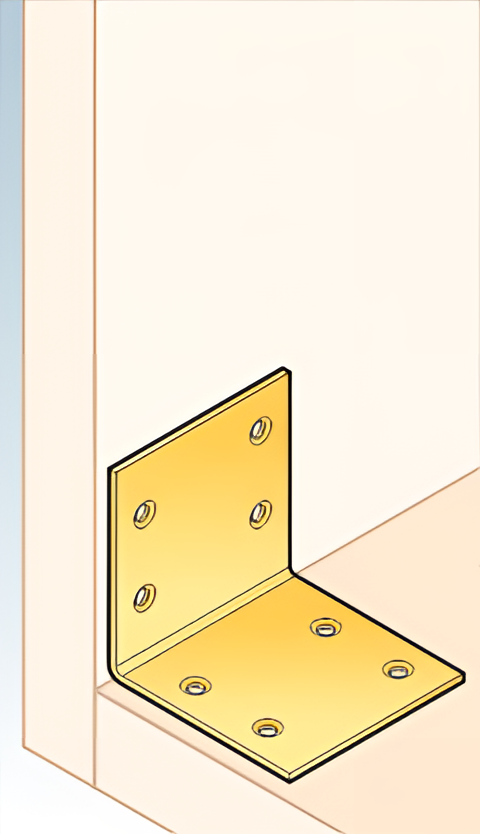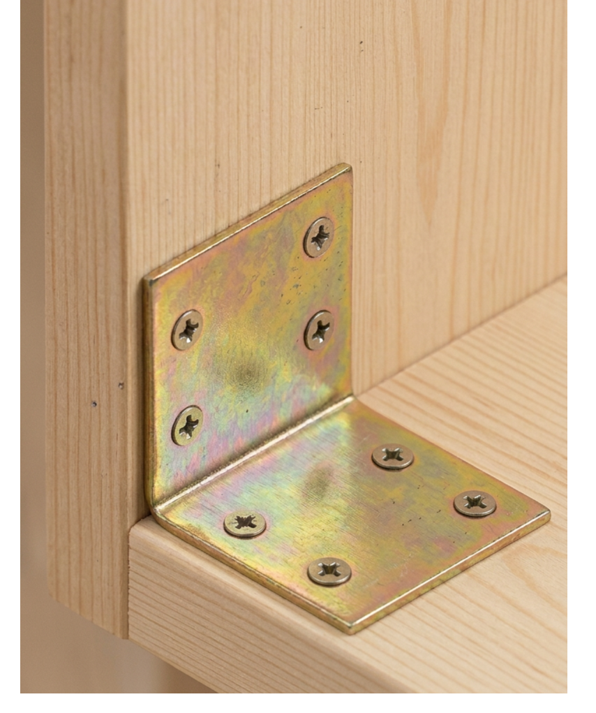 Der Winkel wird mit handelsüblichen Holzverbindern montiert. Die Löcher mit Kegelversenkung gewährleisten ein bündiges Einsenken des Schraubenkopfes und sorgen so für eine ästhetische und glatte Oberflächenoberfläche.