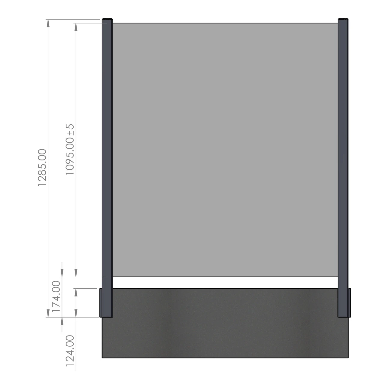 - Maximale Glashöhe: 1095 mm (Toleranz ±5 mm)