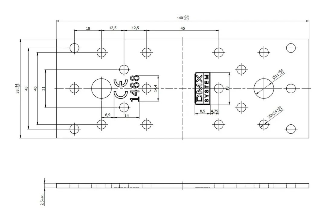 - Montagelöcher: 20 Löcher ø5 mm + 2 Löcher ø11 mm