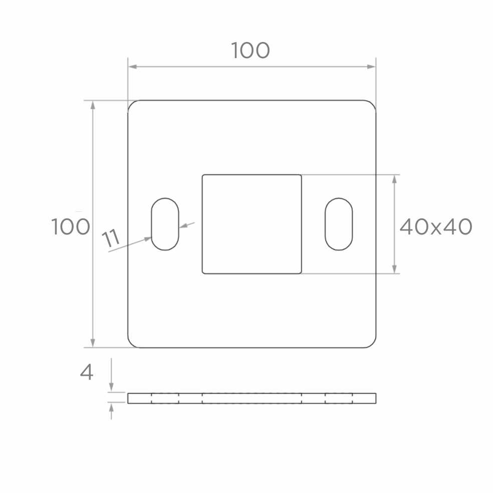 Geländerpfosten-Grundplatte zum Schweißen 100×100 mm – Edelstahl AISI 304, System 40×40