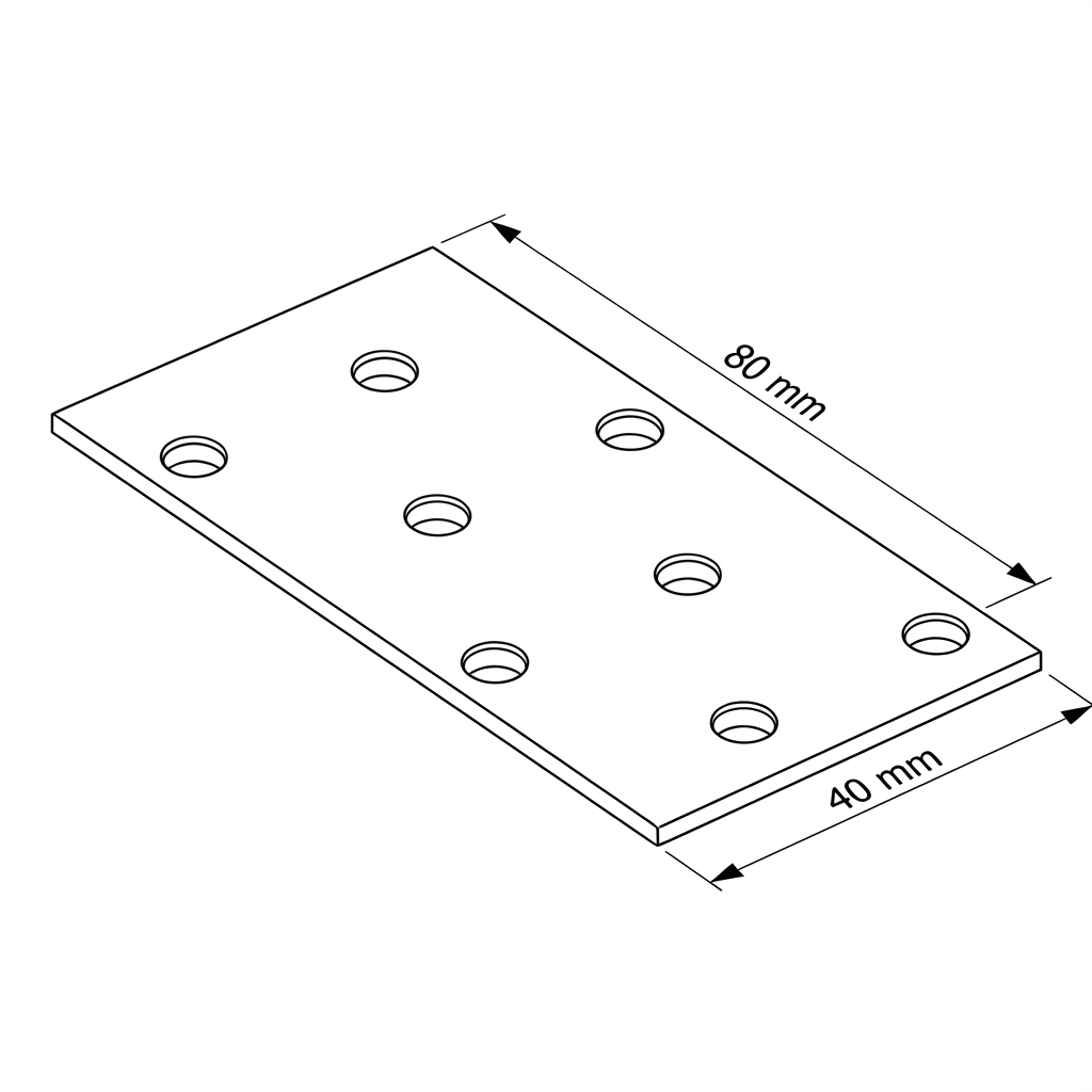 Flachverbinder 40×80 mm ist ein universelles gelochtes Montageblech für Konstruktionsverbindungen, bei denen die Seitenflächen der zu verbindenden Elemente in derselben Ebene liegen. Dank 8 symmetrisch angeordneter Löcher auf der Blechoberfläche ermöglicht dieses Element sowohl einfache als auch komplexere Verbindungen – insbesondere bei der Montage von Dachbindern und Holzkonstruktionen.