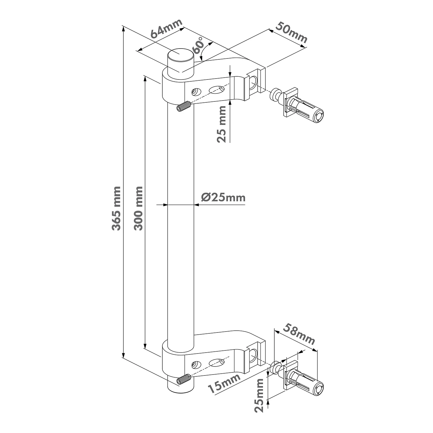 - Halterungstiefe (Abstand vom Profil): 64 mm