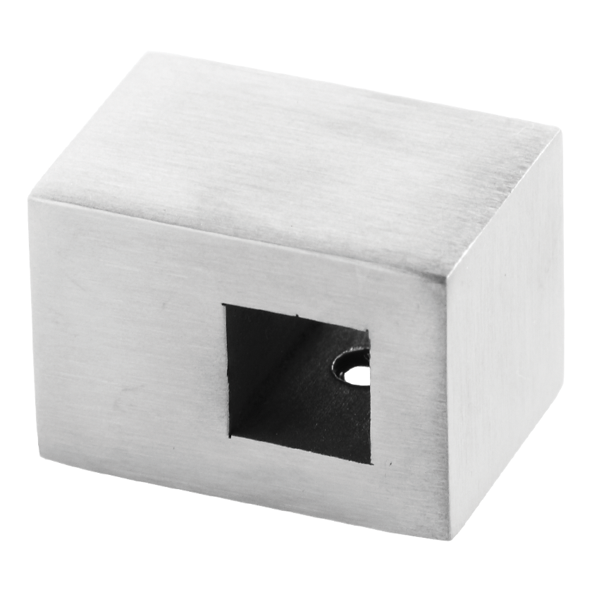 Durchgangshalterung für quadratische Stange 10×10 mm zur Montage auf ebener Oberfläche. Dient zur Verbindung von Geländerelementen — führt Füllstäbe durch die Konstruktion und verleiht ihr die erforderliche Steifigkeit. Aus Edelstahl AISI 304 in satinierter Ausführung gefertigt, gewährleistet hohe Korrosionsbeständigkeit und eine ästhetische, zurückhaltende Optik, die sich ideal in moderne Geländersysteme einfügt.