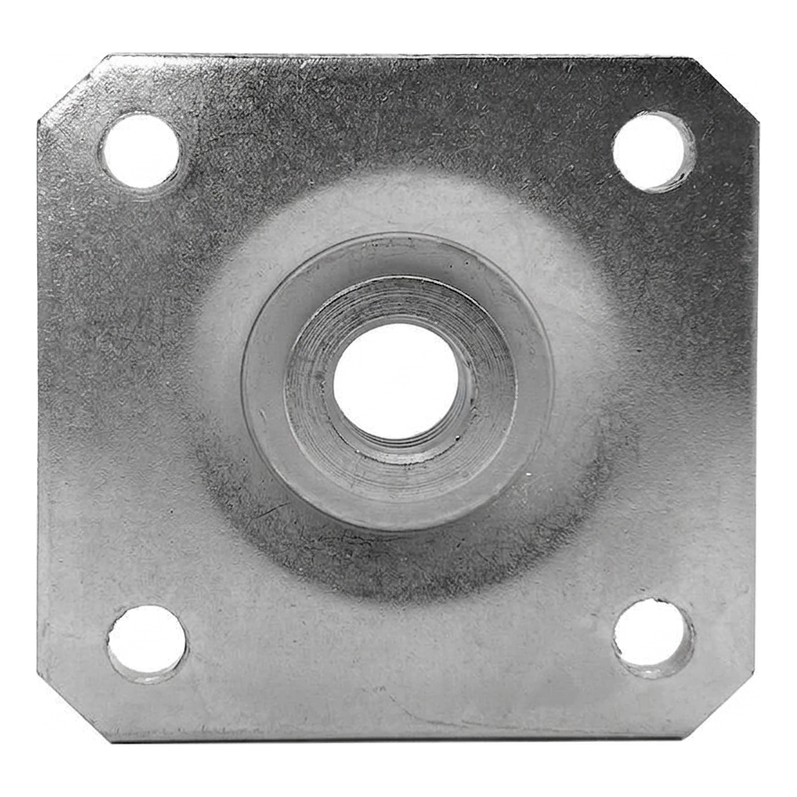 Die zentral eingeschweißte M16-Mutter ermöglicht das schnelle Einschrauben des verstellbaren Scharnierstifts – ohne zusätzliche Verbindungselemente. Die abgeschnittenen Ecken der Platte erleichtern die Anpassung an Zaunpfostenprofile, und die Dicke von 3 mm gewährleistet angemessene Steifigkeit und Tragfähigkeit der Verbindung. Die Platte ist sofort montagebereit – einfach mit vier Schrauben am Pfosten befestigen und den Scharnierstift einschrauben.