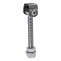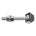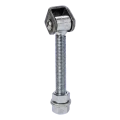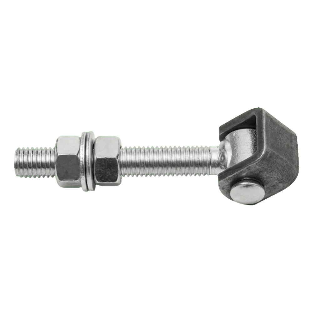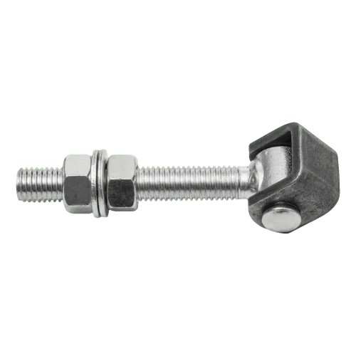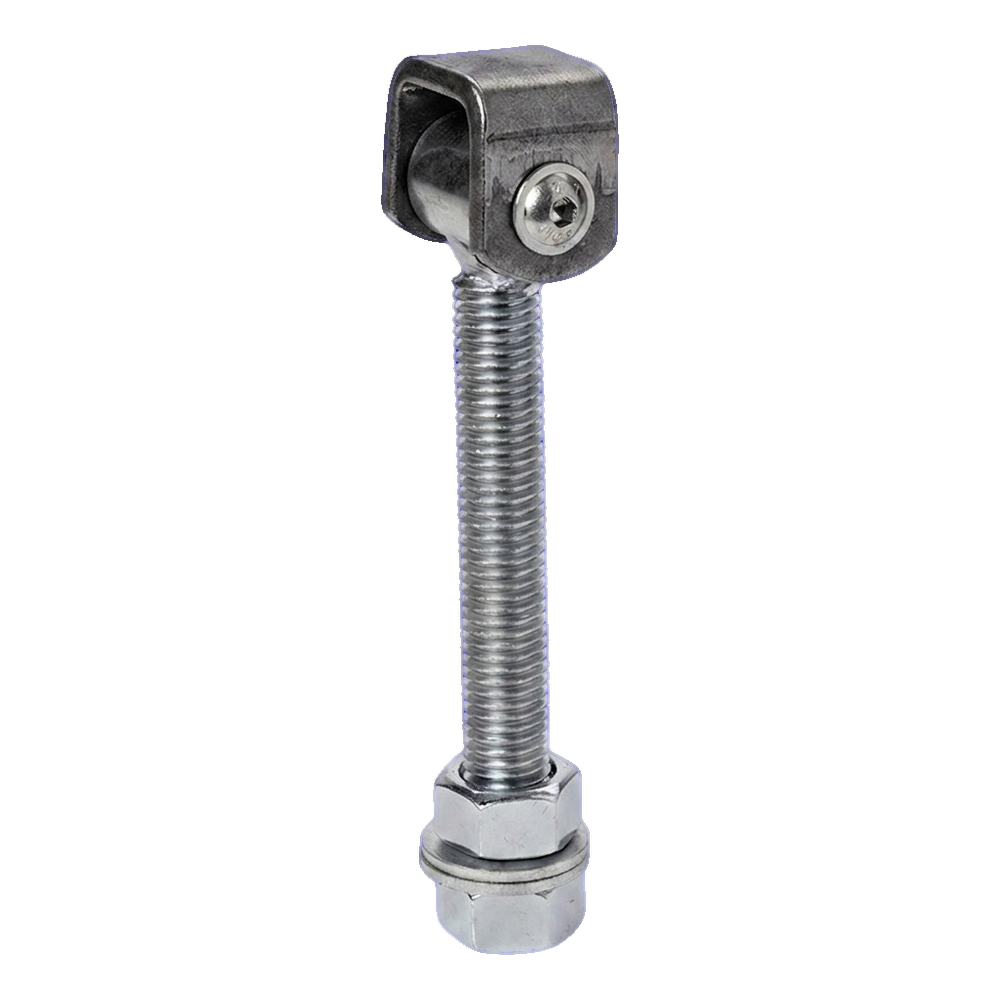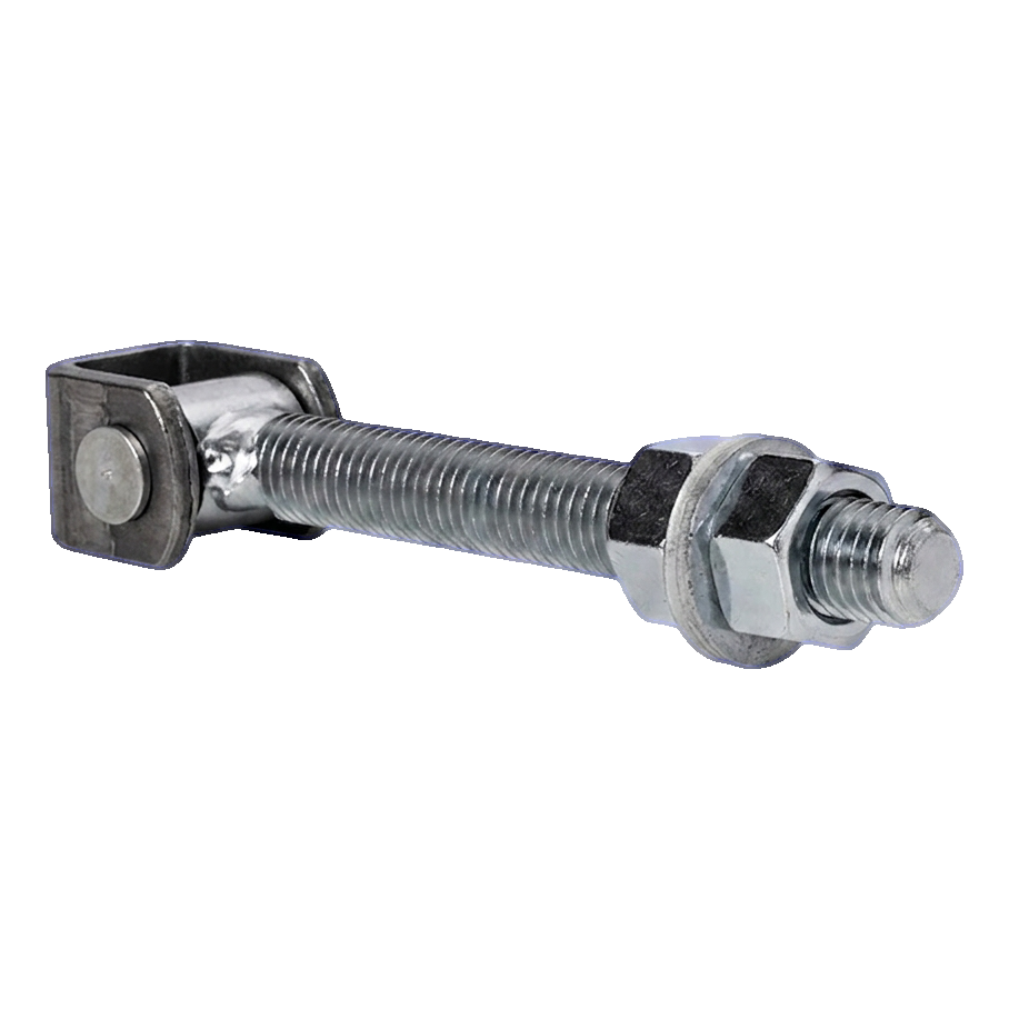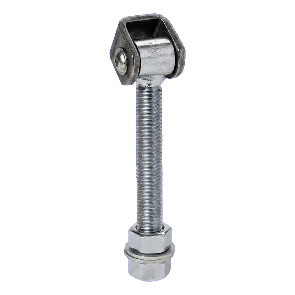 Gewindebolzen und Muttern sind aus verzinktem Stahl gefertigt, was wirksamen Schutz vor Feuchtigkeit und Witterungseinflüssen bietet. Die Scharnieröse besteht aus schwarzem Stahl — vor der Montage wird zusätzlicher Schutz mit Lack oder Korrosionsschutzfarbe empfohlen, um einheitlichen Schutz des gesamten Elements zu gewährleisten und dessen Lebensdauer zu verlängern.