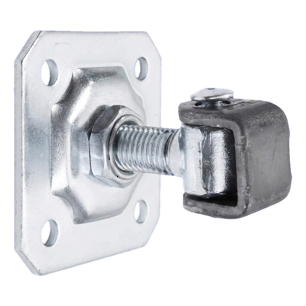 - Nachträgliche Regulierung — die Mutter am M20 Gewinde ermöglicht das Anziehen oder Lockern des Scharniers jederzeit, um Durchhängen des Torflügels oder Temperatureffekte zu kompensieren