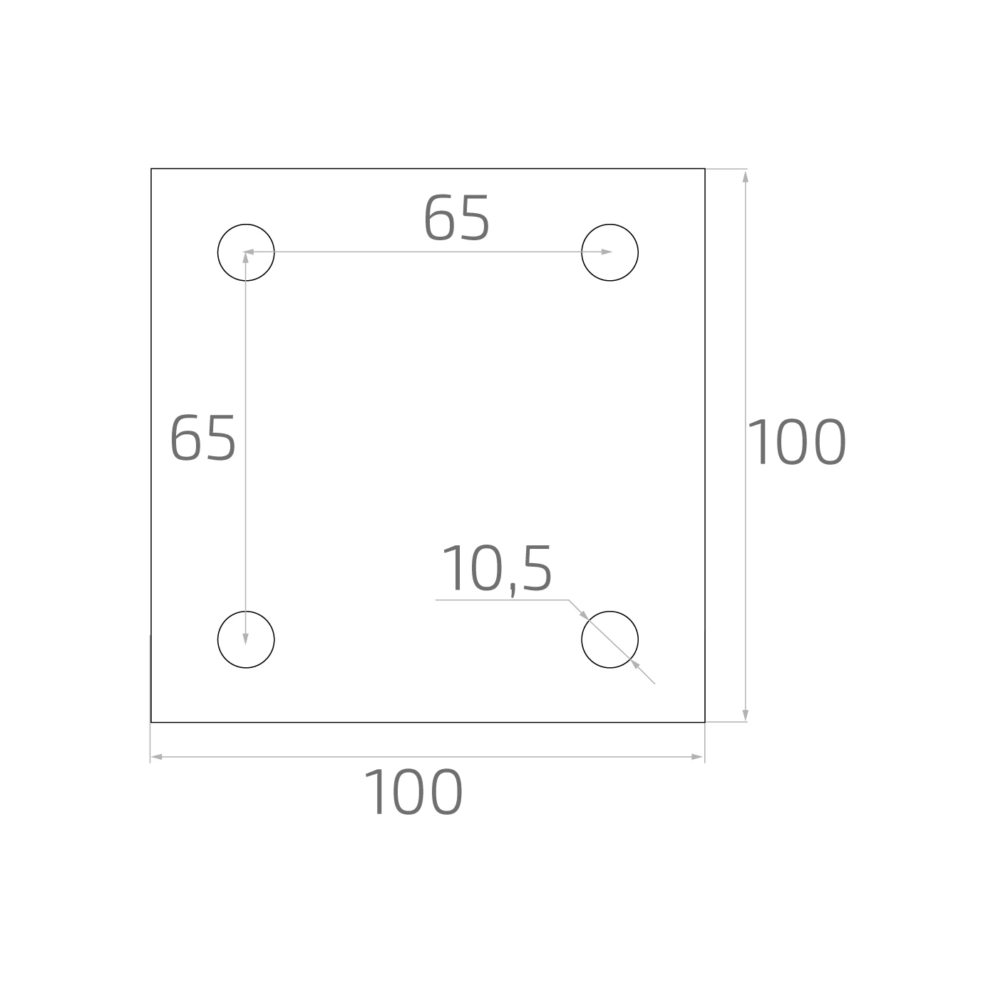 - Montageplatte (Schild): 100 × 100 × 4 mm