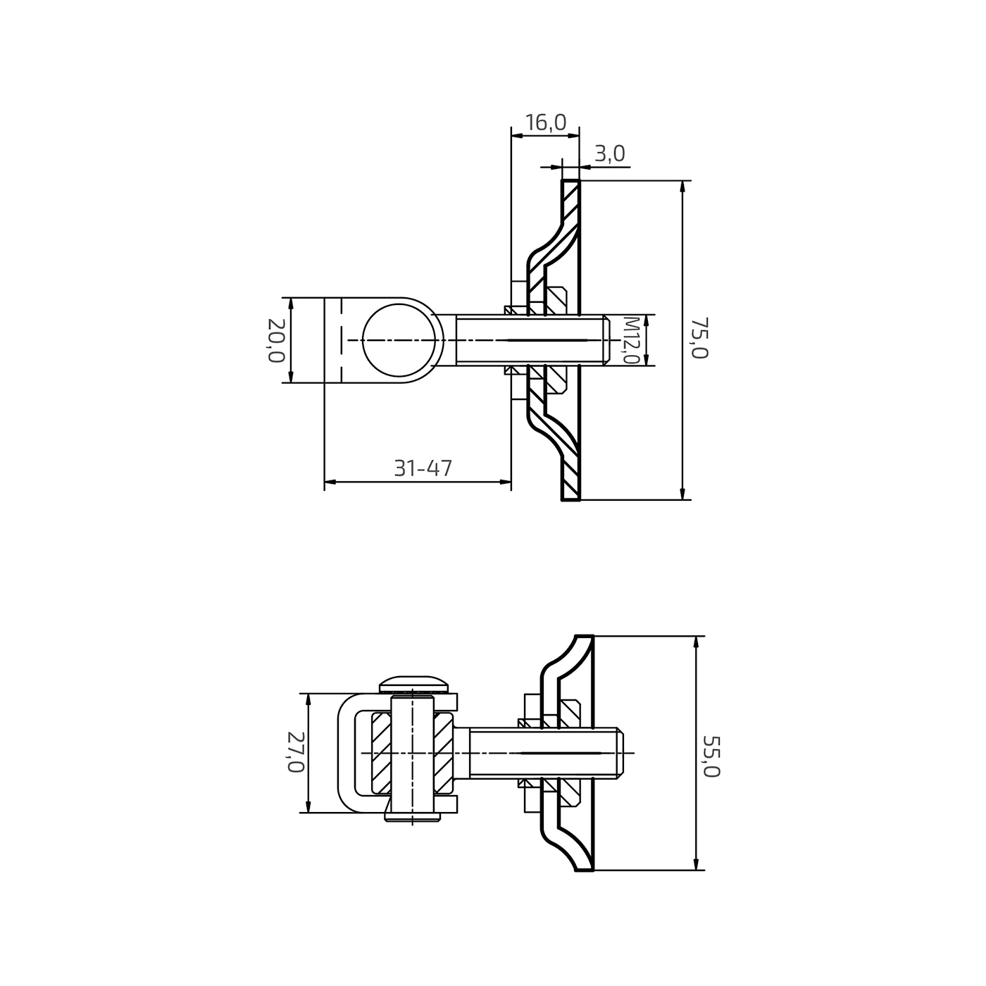 - M12-Gewinde — hohe Tragkraft, für schwerere Torkonstruktionen ausgelegt