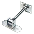Das Torband ist vollständig aus Stahl mit korrosionsschützender Beschichtung (verzinkt) gefertigt, was hohe Witterungsbeständigkeit und Eignung für den Außeneinsatz gewährleistet. Die Konstruktion besteht aus zwei Montageelementen – einem Schild mit vier Befestigungslöchern und einer Platte (U-förmiger Halter) – verbunden durch eine Gewindeschraube M16 mit Reguliermöglichkeit.