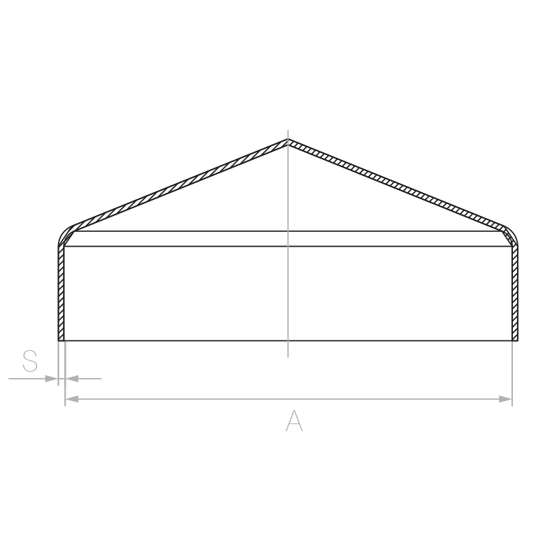 Die Dachkappe ist aus Stahlblech mit 1 mm Stärke gefertigt, was ausreichende Steifigkeit und Haltbarkeit der Konstruktion gewährleistet. Die charakteristische pyramidenförmige Form mit schräger Spitze leitet Regenwasser wirkungsvoll ab und verhindert dessen Ansammlung auf der Pfostenoberfläche. Der hohe Rand garantiert stabile Befestigung am Profil und ästhetisches Aussehen der Abdeckung.