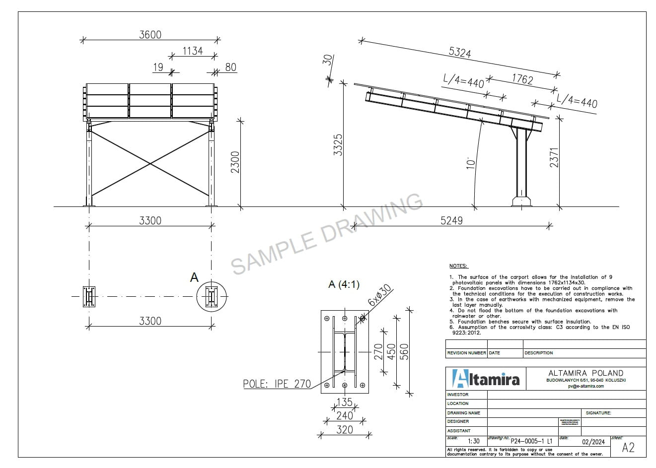 - Das Angebot gilt für die Konstruktion selbst, ohne Photovoltaik-Paneele, Stoßfänger und Abdichtungssystem und Dachrinne