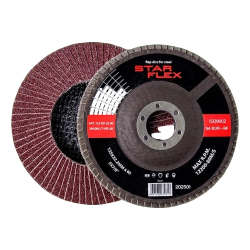 Lamellenscheibe Star Flex T29 125 mm ist ein hochwertiges Schleifwerkzeug mit Korund-Beschichtung, bestimmt für die professionelle Bearbeitung von Stahl. Die abgewinkelte Konstruktion Typ 29 gewährleistet optimale Arbeit im Winkel 10°–25°, was sich in präzises Oberflächenschleifen, effektives Kantenfasen und schnelle Materialabtragung umsetzt. Dank der Körnung 60 verbindet die Scheibe effizientes Schleifen mit gleichmäßiger Oberflächengüte – ideale Lösung für Montageteams, die an Stahlkonstruktionen, beim Schweißen und der Profilbearbeitung arbeiten.