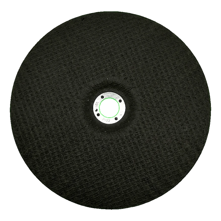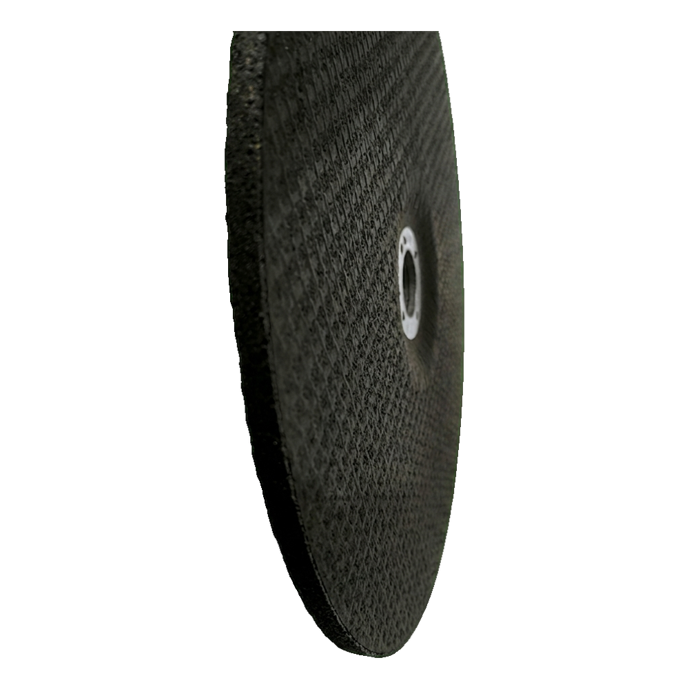 Die Scheibe besitzt ein konkaves Zentralprofil (Typ 27), wodurch die Arbeitsfläche nicht mit der Befestigungsmutter des Winkelschleifers kollidiert. Das von der Rückseite sichtbare Verstärkungsgitter aus Glasfaser verstärkt die Schleifstruktur und schützt vor dem Zerfall der Scheibe bei Arbeitsdrehzahlen.