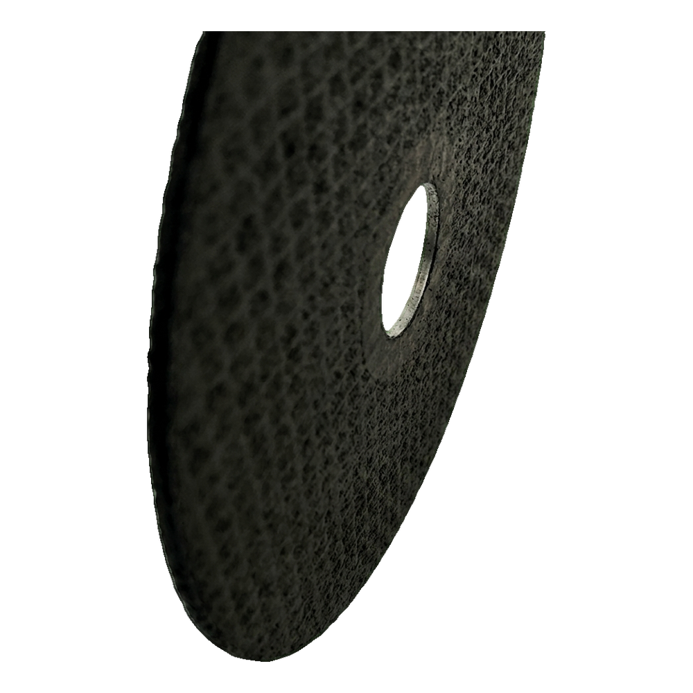 Die Scheibe verfügt über eine Fasernetzverstärkung, die auf der Rückseite sichtbar ist und den Zerfall der Scheibe bei hohen Drehzahlen verhindert und sicheren Einsatz auch bei intensiver Seitenbelastung gewährleistet. Die Kunstharzbindung sorgt für Beständigkeit gegen hohe Temperaturen beim Schneiden, und die Korund-Schleifkörner legen sich während des Verschleißes selbsttätig frei – wodurch eine konstante Schneidagressivität über die gesamte Nutzungsdauer erhalten bleibt.