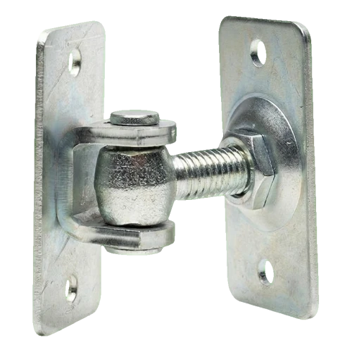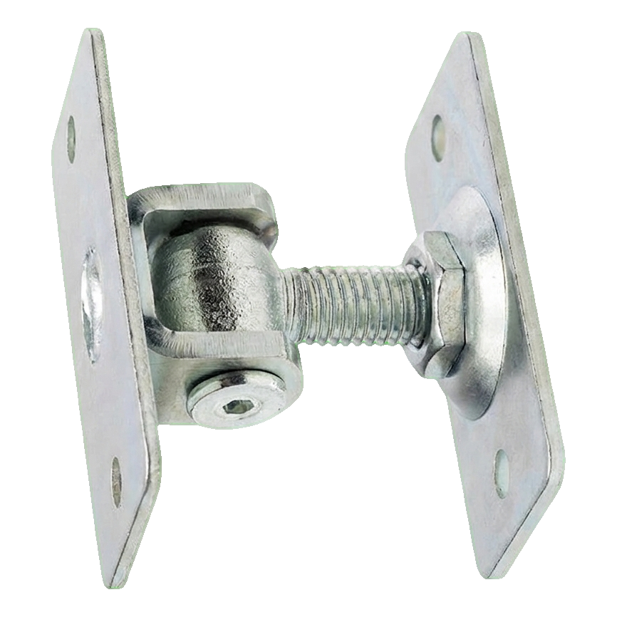 Verstellbares Scharnier M12 mit Stahlgewindeschraube ist ein robuster und praktischer Beschlag für die Montage von Pforten und Toren. Die beidseitig verschraubbare Konstruktion eliminiert die Notwendigkeit des Schweißens — es genügt, beide Montagplatten an Pfosten und Flügel zu schrauben, was die Installationszeit auf der Baustelle erheblich verkürzt.