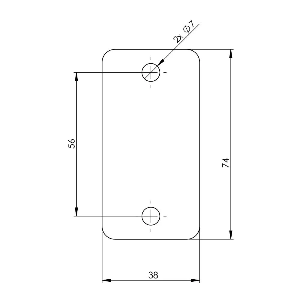 - Abmessungen der Grundplatte (Montageplatte): 74 × 38 mm