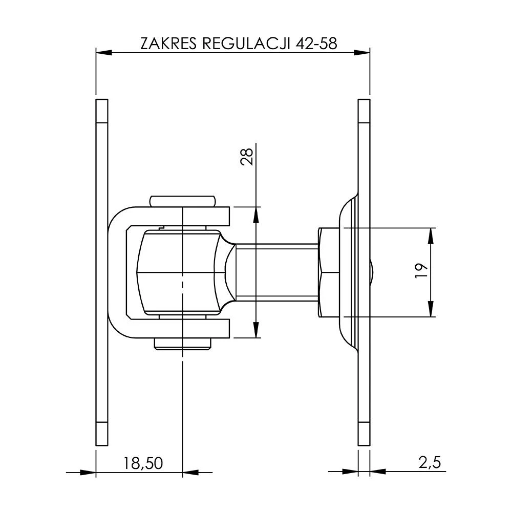 - Verstellung nach der Montage — der Bereich 42–58 mm ermöglicht die Korrektur der Flügeleinstellung ohne Demontage