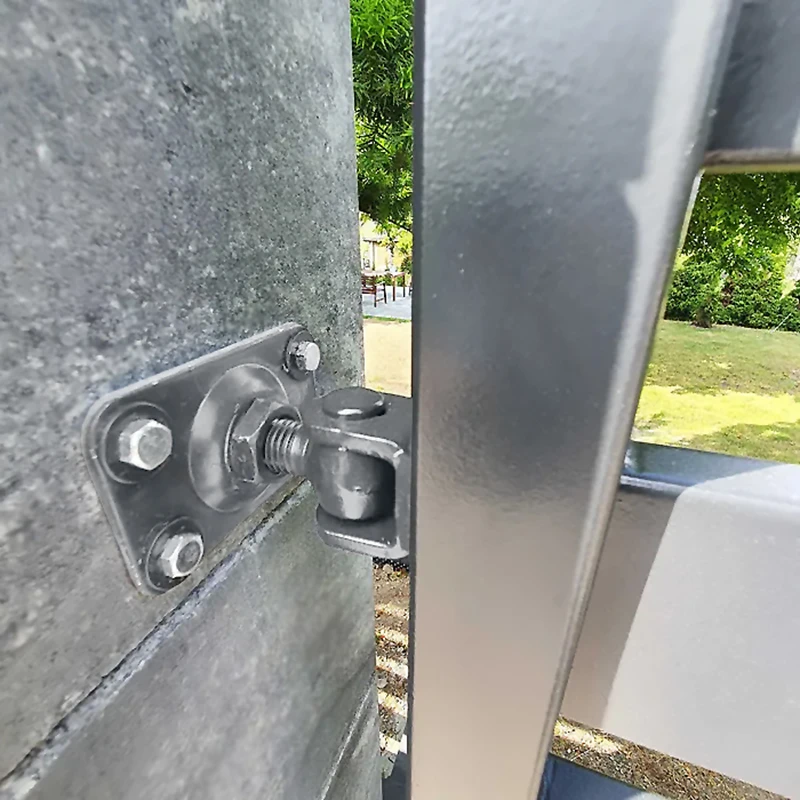 Verstellbares Scharnier mit rechteckigem Schild ist ein robustes Montageelement für die Installation von Gartentoren. Dank des M16-Gewindes und der Möglichkeit der Nachjustierung jederzeit nach Abschluss der Montage ermöglicht das Scharnier eine präzise Anpassung der Torflügelstellung — selbst bei Durchhängen der Konstruktion oder thermischen Verformungen durch extreme Witterungsbedingungen.