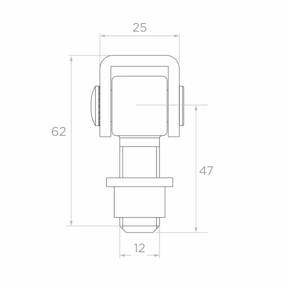 Die universelle Bauweise des Scharniers ermöglicht die Verwendung sowohl bei linken als auch rechten Toren. Der Gewindestift M12 ermöglicht schnelle und sichere Befestigung — es genügt, die Scharnieröse an den Rahmen zu schweißen und den Stift in das entsprechende Tragelement zu schrauben. Die Verstellung nach der Montage beschleunigt die Installationsarbeiten erheblich und eliminiert Probleme mit Schweißungenauigkeiten.