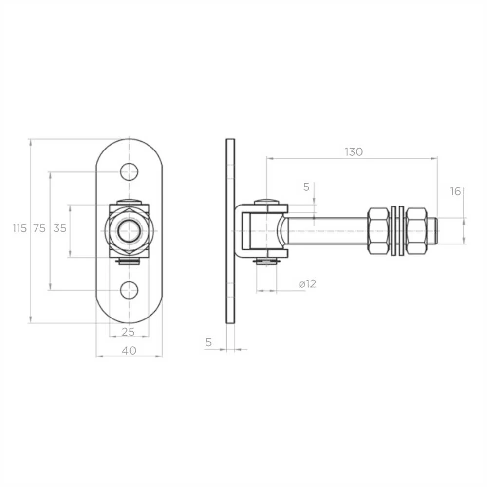 Das verstellbare Torband M16 mit Schild ist ein widerstandsfähiges Beschlagelement für die Montage von Torflügeln und Pforten. Dank des Gewindezapfens M16 ermöglicht es eine präzise Einstellung der Flügelposition zu jedem Zeitpunkt nach der Installation – sowohl bei Durchhängen der Konstruktion als auch bei Maßänderungen durch extreme Temperaturen.