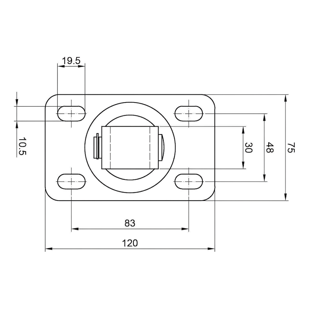 - Abmessungen der Grundplatte: 120 × 75 mm