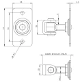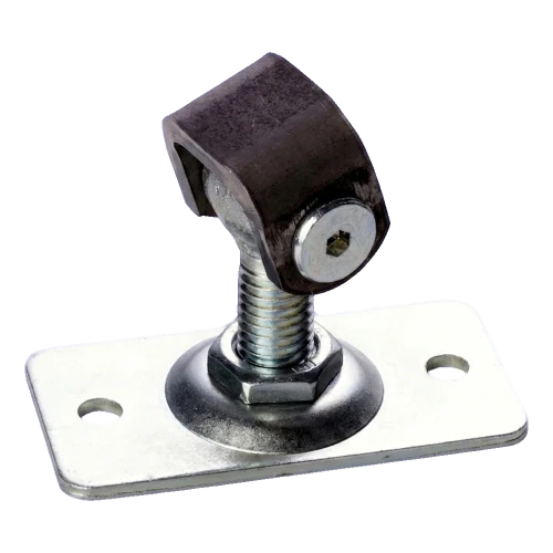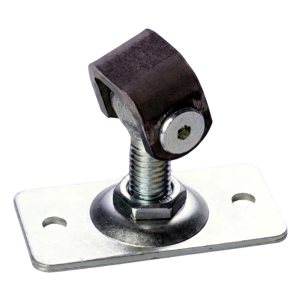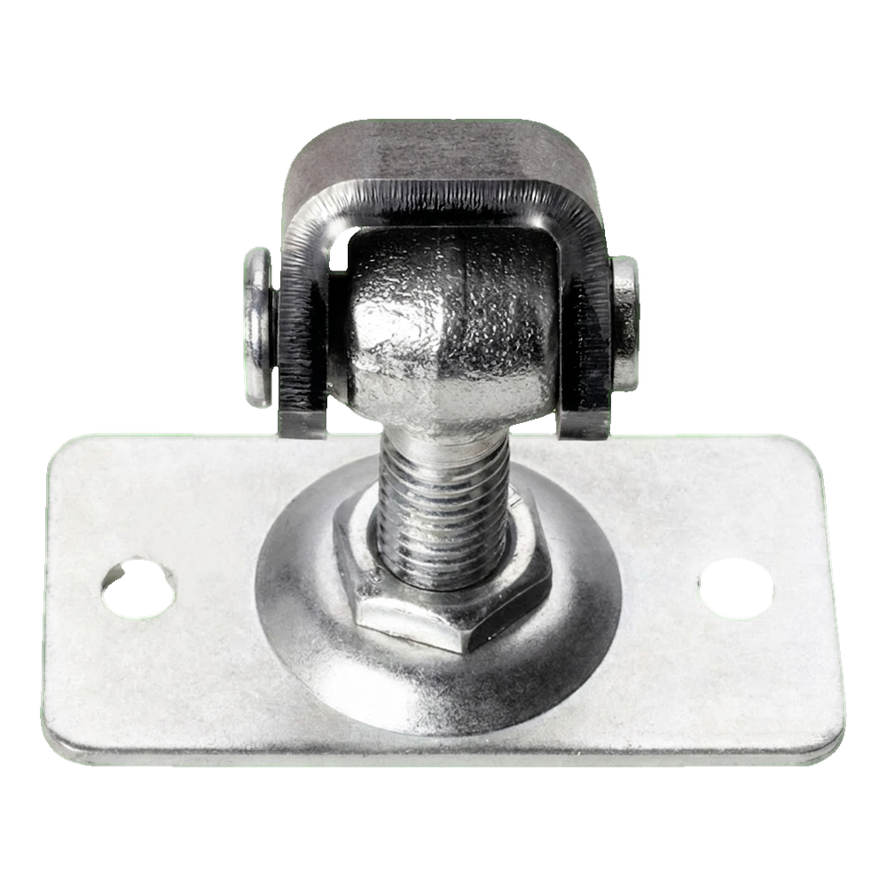 Das rechteckige Schild mit vier Befestigungsbohrungen gewährleistet eine stabile und sichere Verschraubung am Pfosten oder Rahmen. Die Gewindeschraube M12 ermöglicht eine stufenlose Verstellung der Ausladung im Bereich 38–55 mm, was dem Installateur volle Kontrolle über die Einstellung der Tür relativ zum Pfosten gibt. Das Banddauge dreht sich frei auf der Bolzenachse und gewährleistet einen reibungslosen Betrieb des Flügels.