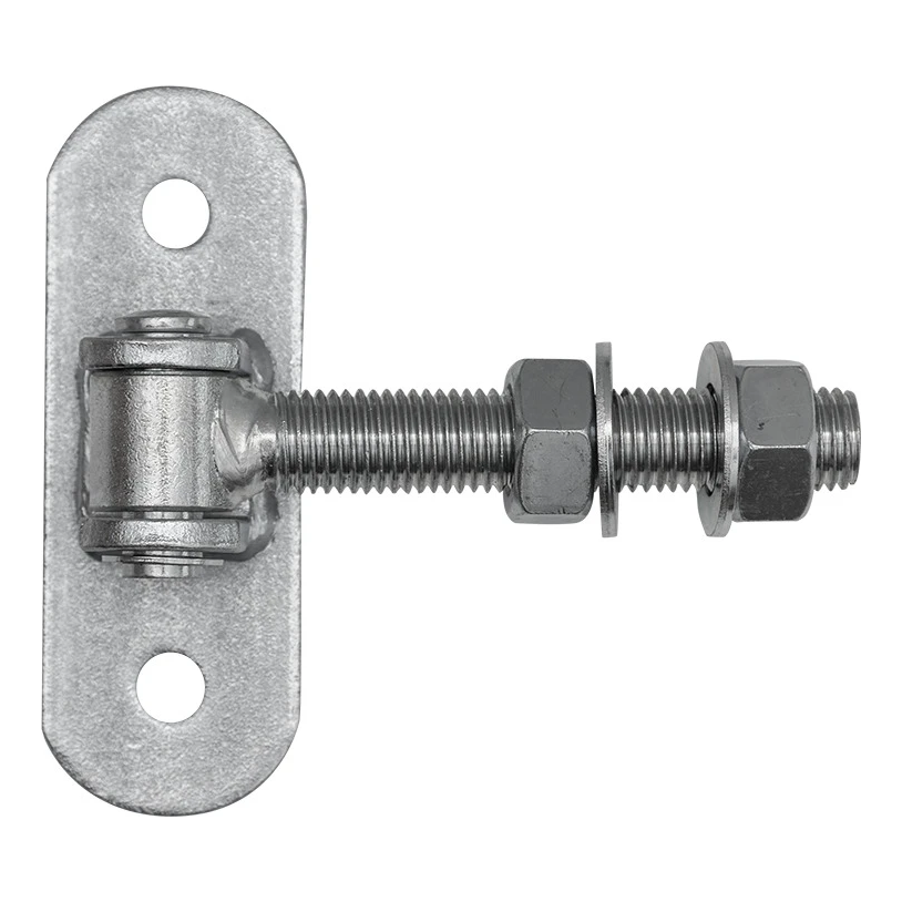Verstellbares Scharnier M20 mit Schild 140×50 mm ist ein robustes Beschlagelement für die Montage von Torflügeln und Pforten. Die Konstruktion mit Gewinde M20 ermöglicht eine präzise Regulierung der Flügel-Aufhängung zu jeder Zeit – sowohl nach Abschluss der Montage als auch während des Betriebs, z.B. bei Durchhängen der Konstruktion oder thermischen Verformungen des Metalls bei extremen Temperaturen.