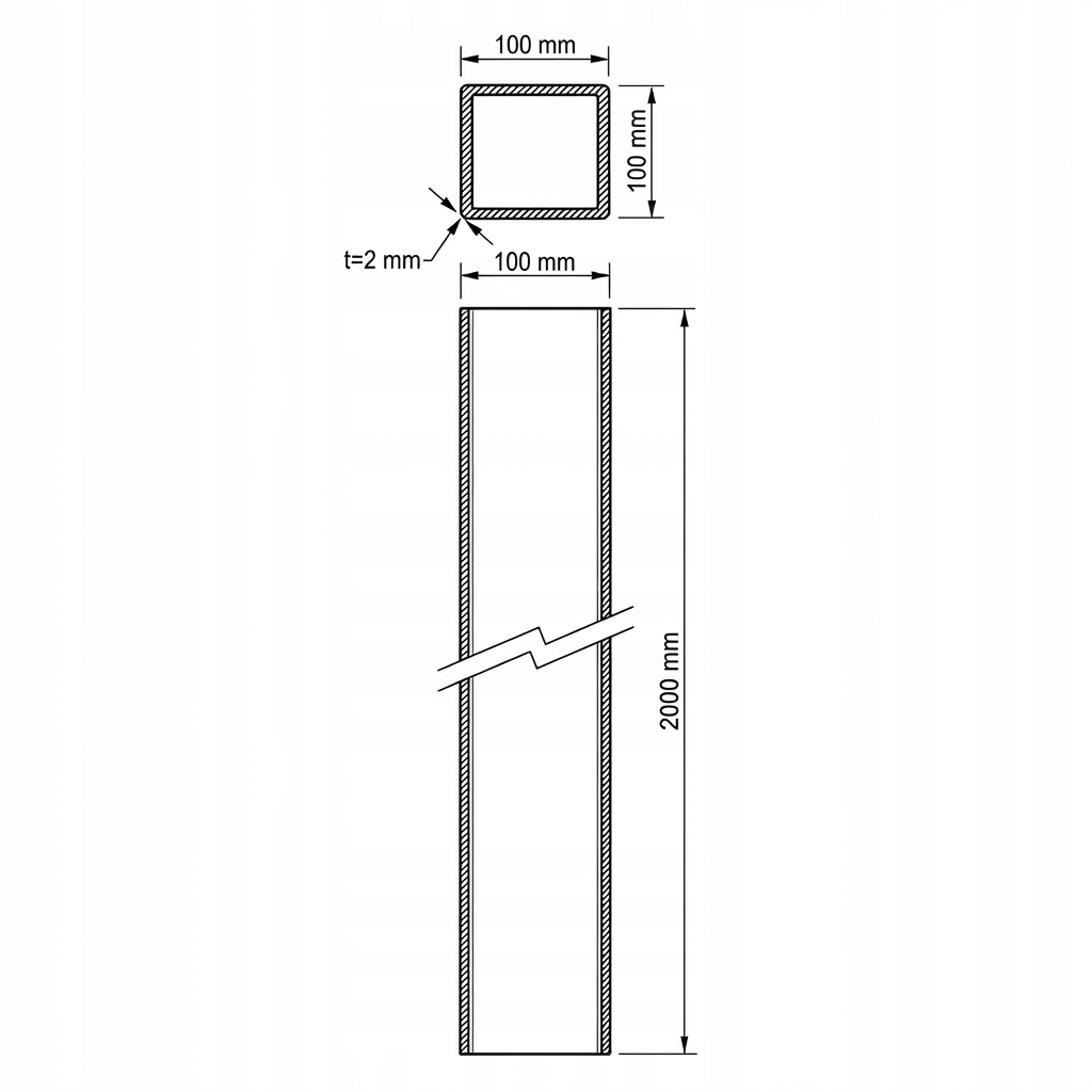 - Querschnitt: 100×100 mm (quadratisches Profil)