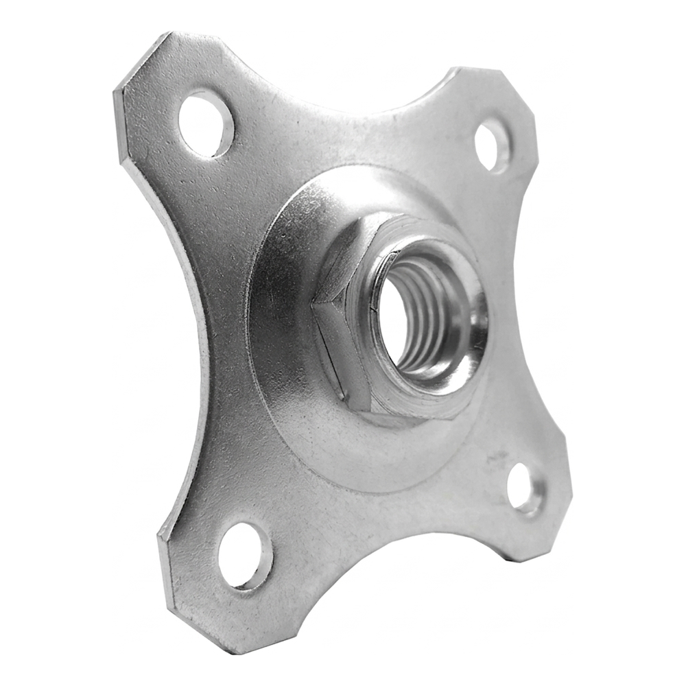 Die Zierrosette 80 × 80 × 3 mm ist ein ästhetisches Montageelement für die Verwendung mit verstellbaren Scharnieren mit M16-Schraube. Dank vier Montagelöchern gewährleistet sie eine dauerhafte und stabile Verschraubung an Pfosten oder Torrahmen, und die Zinkbeschichtung garantiert jahrelange Korrosionsbeständigkeit und Wetterbeständigkeit.