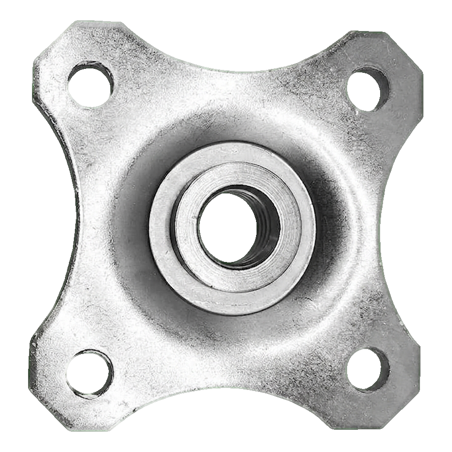 Die Zinkbeschichtung auf der gesamten Rosettenoberfläche gewährleistet einen wirksamen Korrosionsschutz, was bei Außenmontagen entscheidend ist, die Regen, Schnee und wechselnden Temperaturen ausgesetzt sind. Die Dicke von 3 mm garantiert ausreichende Steifigkeit und mechanische Beständigkeit — die Rosette verformt sich nicht unter der Last des verstellbaren Scharniers, auch bei schweren Torflügeln.